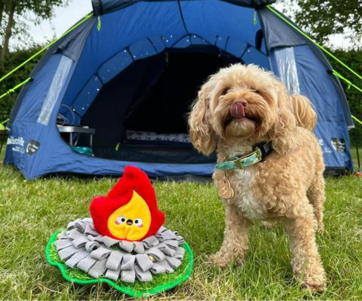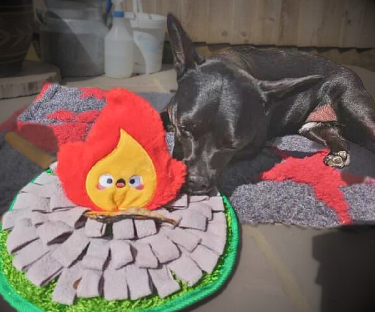 • Tapis de fouille et jouet pour chien sur le thème du feu de camp