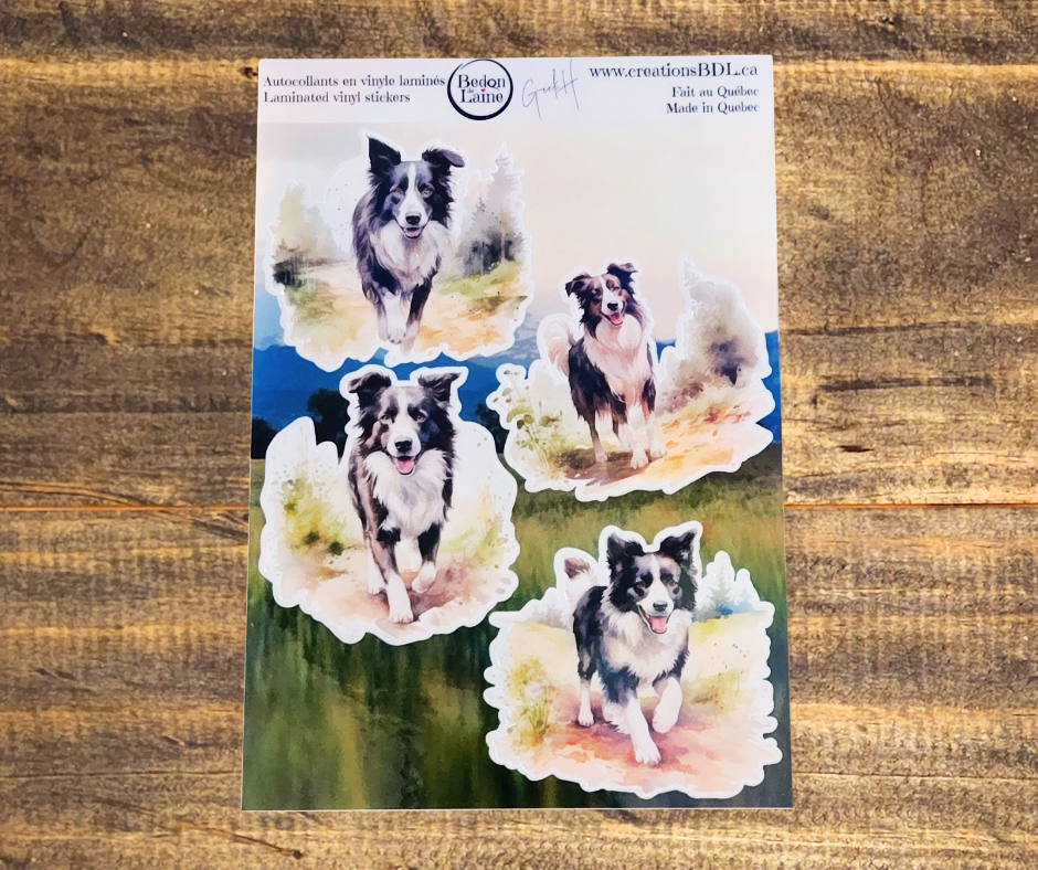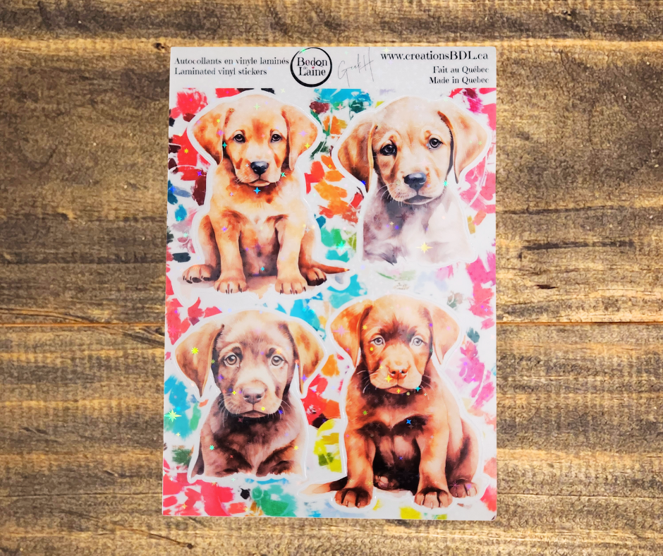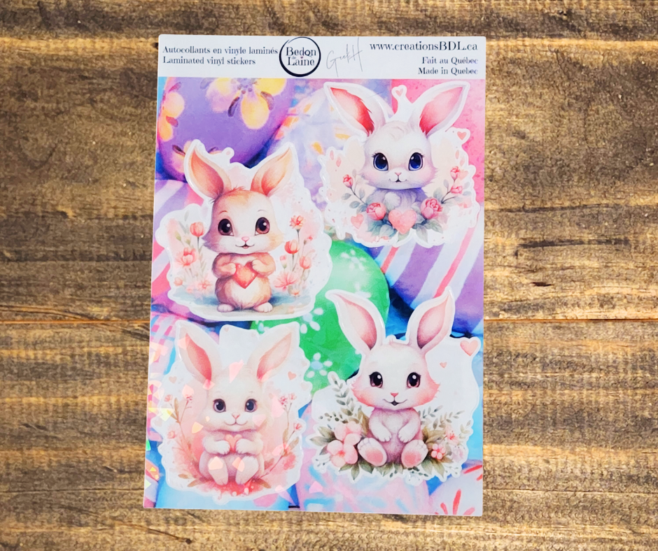 Feuilles d'autocollants holographiques fait par l'entreprise québécoise Créations Bedon de laine.