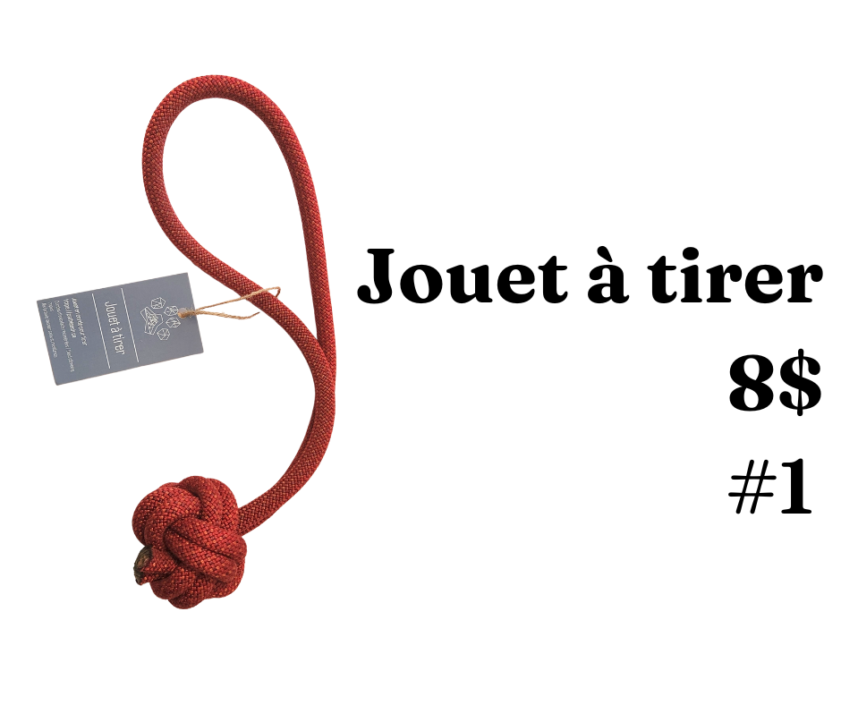 Ces jouets à tirer pour chien sont faits à partir de sections de cordes d'escalade récupérées et moins esthétiques pour en produire des laisses.